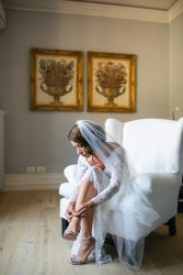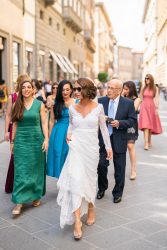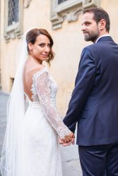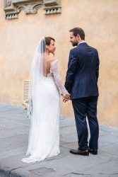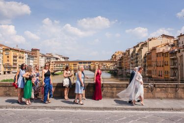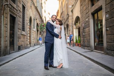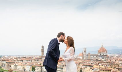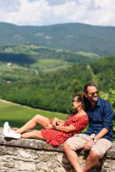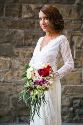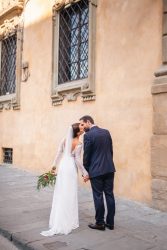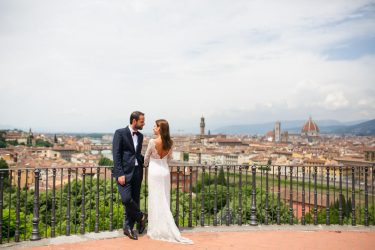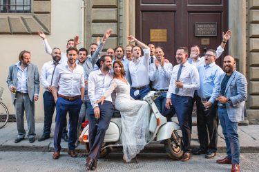 If you’re on the look for total romance then Florence is the answer. Didi and Vag had Italy under their radar and we couldn’t be happier to document their 3day wedding celebrations in the cradle of Rennaisance as Firenze has been nicknamed for a good reason too. We jumped a plane and early before their wedding day we had already joined the two lovebirds at Castello di Verrazzano, an Etruscan castle nestled in the verdant hills of Greve in the heart of the Chianti, between Florence and Siena. Wine tasting, romantic walks and just the two of them (and us) portraiture set us in the mood for the big day, that began at the Terrace Suite of Tornabuoni in great spirits, merry parties and total style! It’s not an Italian affair unless you get to walk to church with your party and have every Italian hail and blessing you on the top of their voice or without having your dinner in one of those oh-so-italian trattorias festooned with rustic tables, darkwood aesthetics and bottles of vintage vino overhead. Not to mention the Vespa waiting all polished for you to have some fun group shots (plus the inevitable German tourist -not pictured here- who wants to take a picture with the bride and groom) and mount away into the sunset. The day after we took Didi and Vag to Abbazia di San Miniato al Monte for their intimate portraits as Mr.and Mrs. backdropped by history and anchored by beauty!